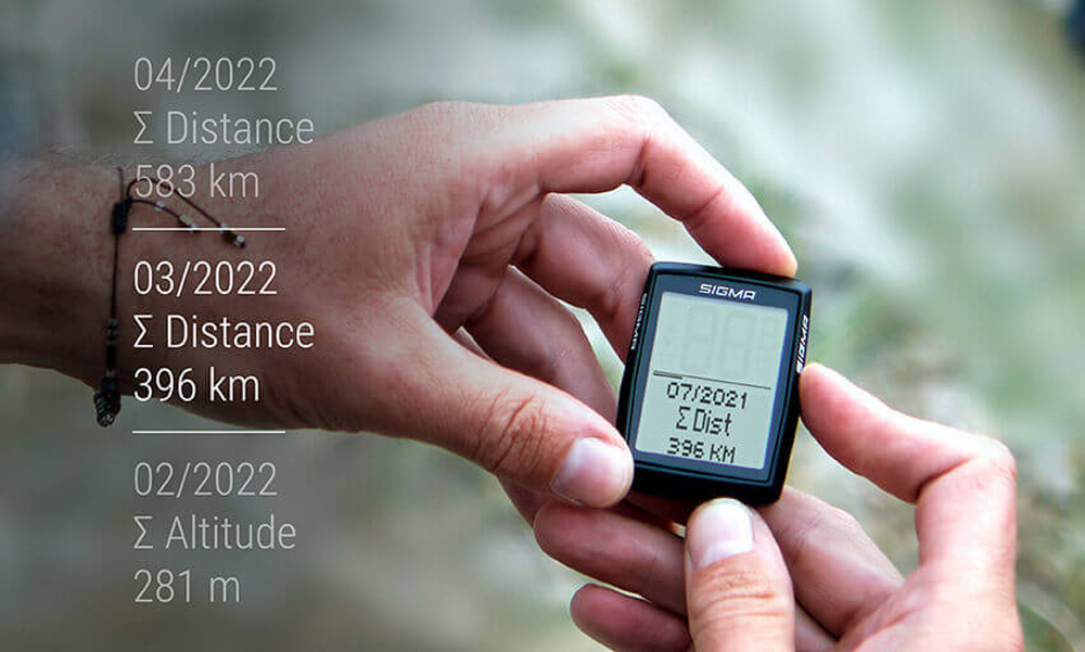 Bergfahrer kommen hier voll auf ihre Kosten: Der BC 14.0 WL ist dein perfekter Begleiter – gerade wenn es richtig steil wird. Der SIGMA ORIGINAL zeigt dir an, auf welcher Höhe du dich aktuell befindest und wie stark die Steigung gerade ist. In der Analyse bietet dir der kabellose Bike Computer einen Überblick darüber, wie viele Höhenmeter es auf deiner Tagestour bergauf gegangen ist und welche maximale Höhe du erreicht hast. Der Radcomputer speichert auch, wie viele Gesamthöhenmeter du auf deinen Touren bewältigt hast.