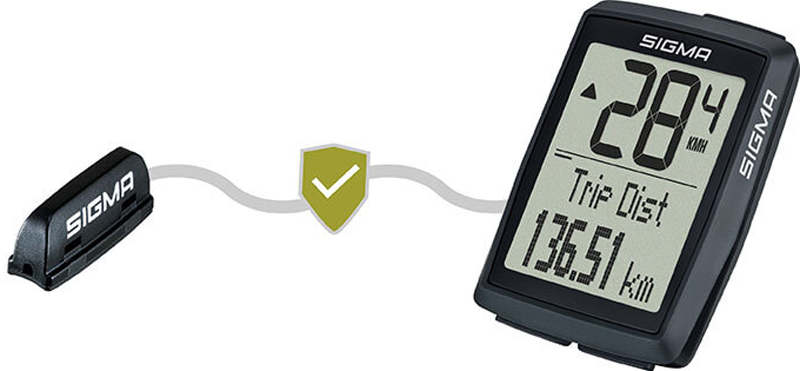 Durch die direkte Kabelverbindung des Tachos zum Sender läuft die Geschwindigkeitsmessung reibungslos. Eine Batterie zur Funkübertragung ist beim BC 14.0 WR überflüssig und dein Fahrrad Computer fährt jahrelang, ohne dass du dich um den Austausch einer Batterie kümmern musst.